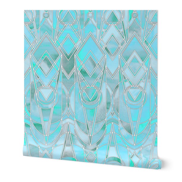 Wallpaper Roll Art Deco Modern Nouveau Geometric Watercolor 24in X
