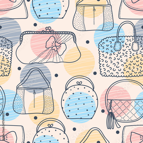Cute Fashion Seamless Pattern With Bags Line Background Seamless