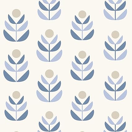Blue Beacon House 2535 20652 Scandinavian Block Print Tulip Wallpaper