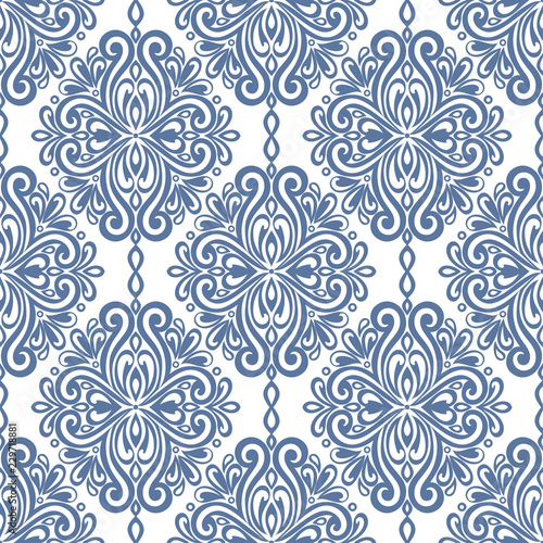 Blue And White Damask Vector Seamless Pattern Wallpaper Elegant