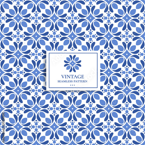 Blue And White Vintage Vector Seamless Pattern Wallpaper Elegant