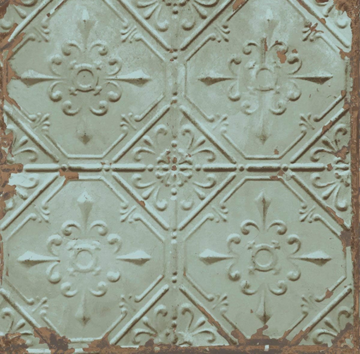 Chelsea Tin Tile Effect Wallpaper Aqua Green Metallic Copper