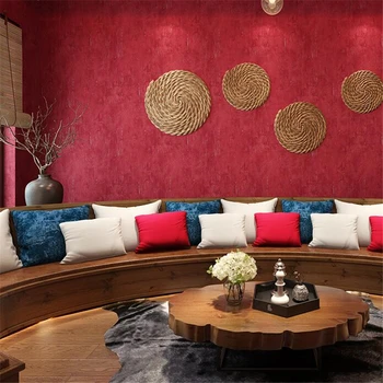 Wellyu Retro Pure Color Red Wallpaper Burgundy Big Red Living Room