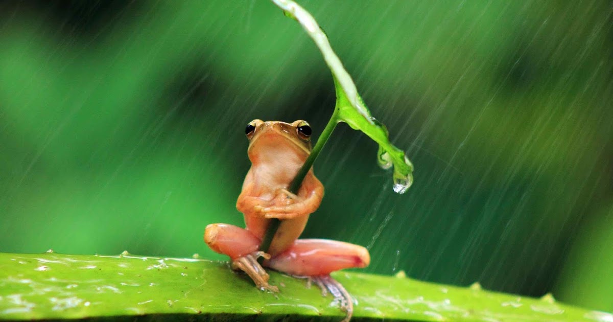 Wallpaper Girl Rain Frog Smile Anime Water Cute Frogs