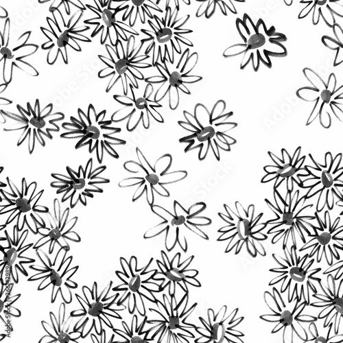 Black White Daisies Ditsy Seamless Pattern Great For Summer