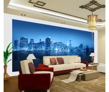 Hd Night Views Digital Printing Blue Background New York City