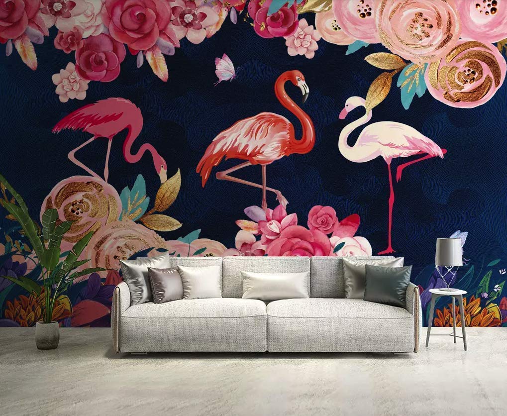 Amazon Com Murwall Flamingo Wallpaper Rose Wall Mural Floral Wall