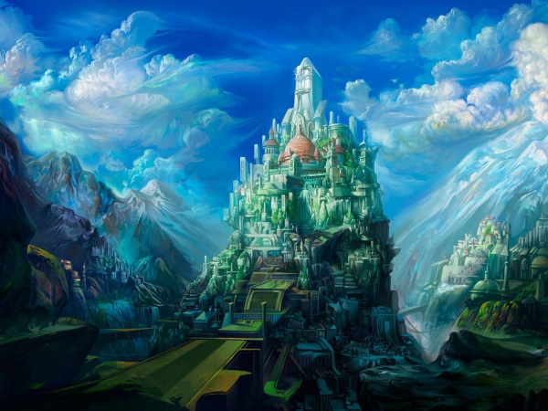 Fantasy Castle Mountains Clouds Art 2416 Wallpapers And Free