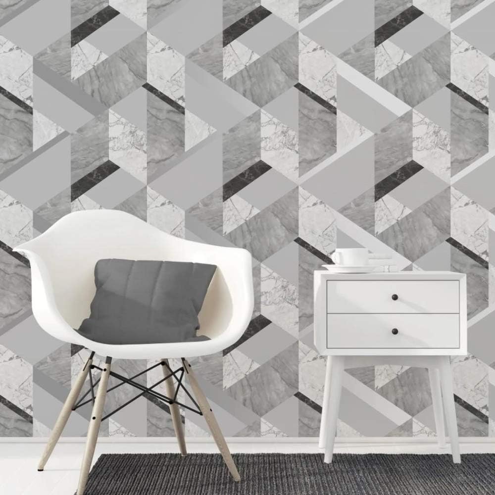 Fine Decor Marblesque Geometric Marble Wallpaper Grey And Silver