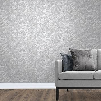 Metallic Marble Effect Wallpaper Grey Light Grey Amazon Co Uk
