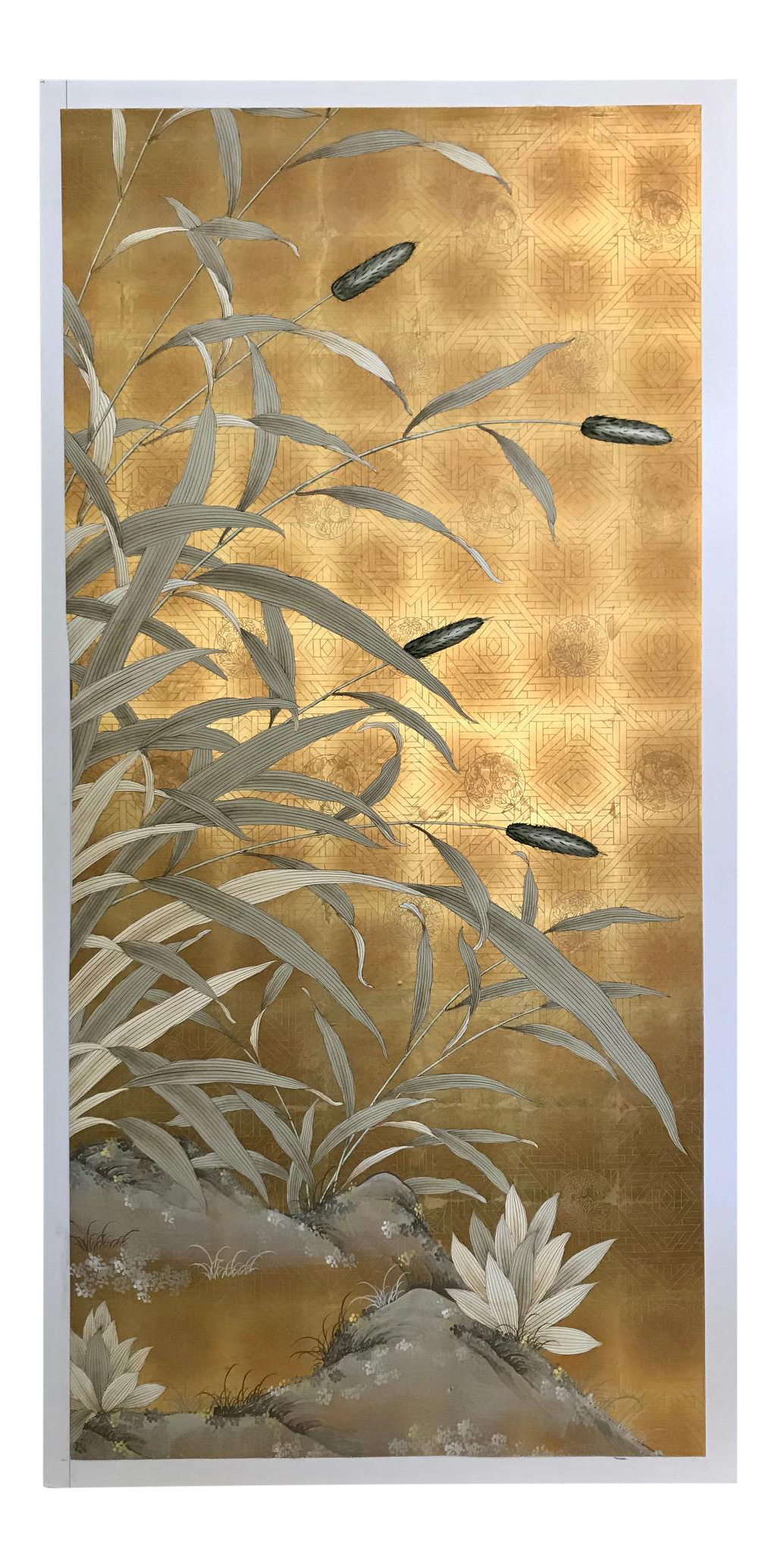 Chinoiserie Handpainted Wallpaper Panel Silver Metal Leaf With