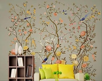 Custom Wall Paper Mural Hand Painted Chinese Style Flowers Birds