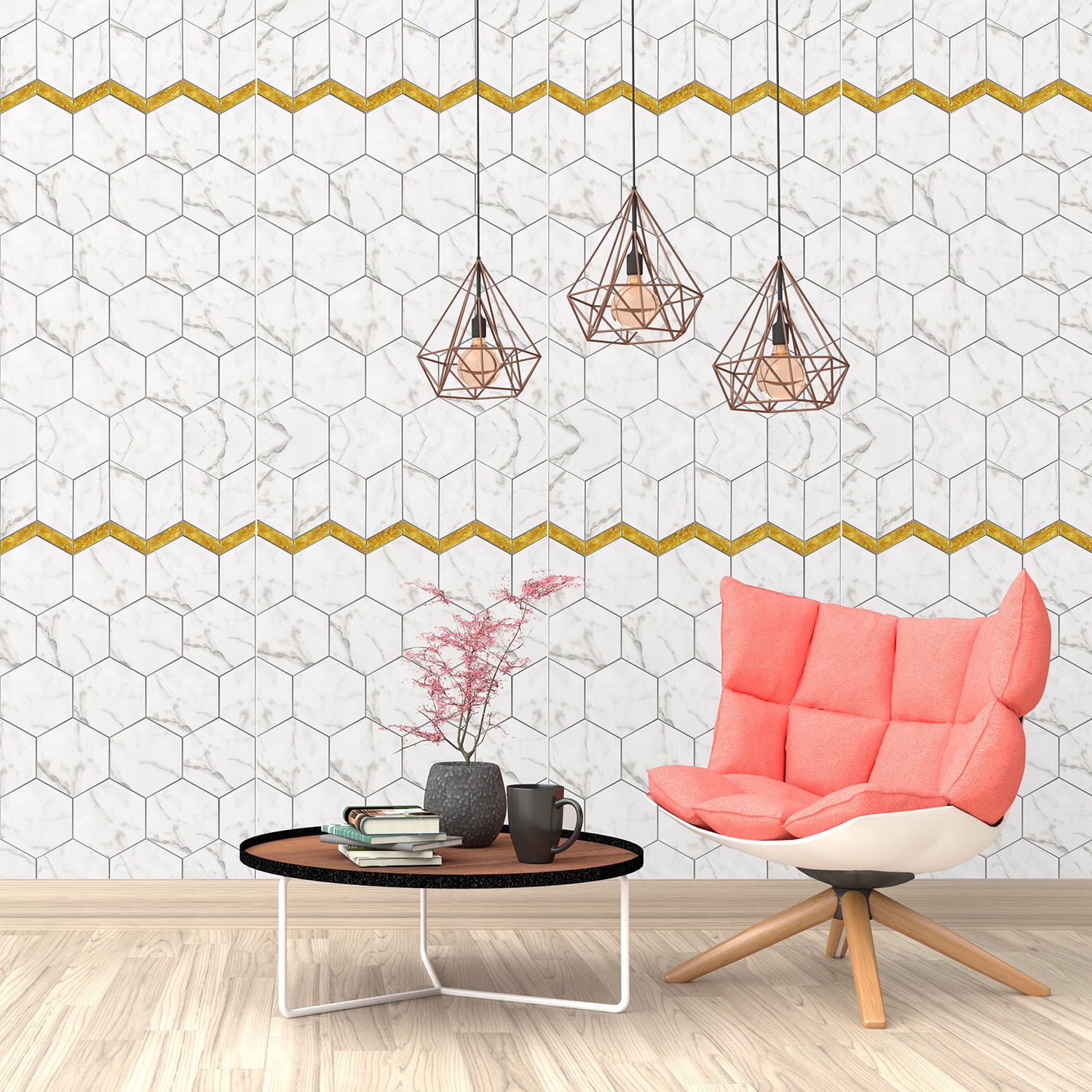 Walplus Marble Effect Tile Self Adhesive Wallpaper With Golden