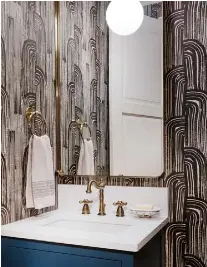 Gray And Gold Powder Room With Kelly Wearstler Crescent Wallpaper