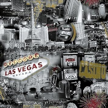 Grandeco Ideco Las Vegas Black White Photographic Casino Wallpaper