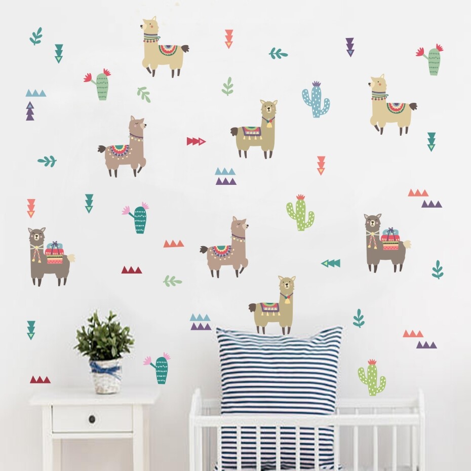 Alpacas And Cacti Wall Decals Kids Room Diy Stickers For Baby Room