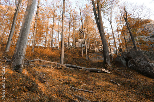 Popular Place Of Ukraine Scenic Image In Forest In Dovbush Rocks