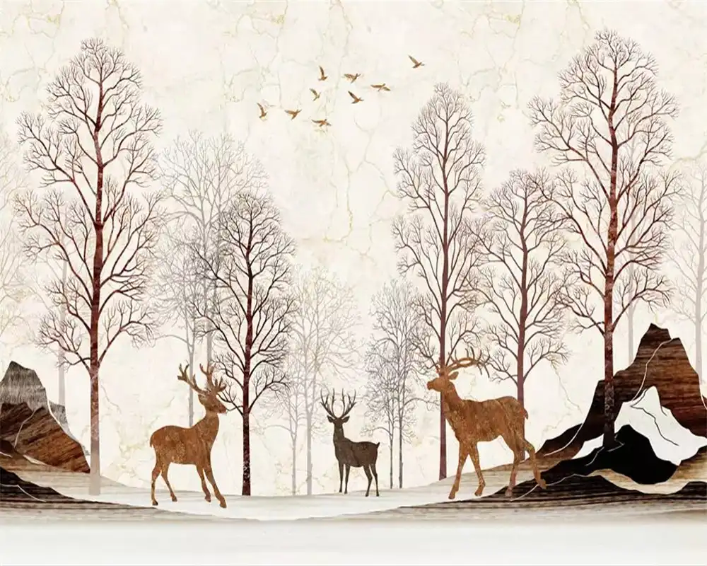 Beibehang Custom Wallpaper 3d Nordic Marble Moose Deer Forest