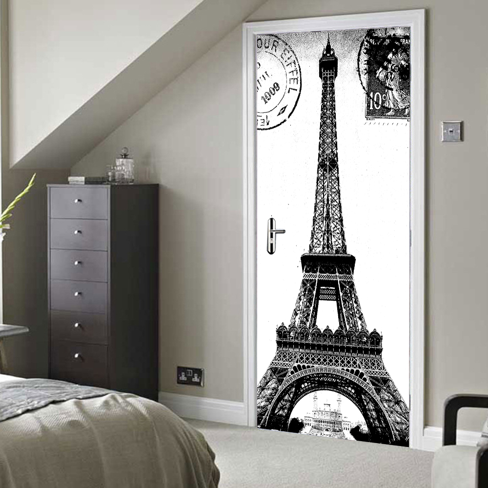 3d Door Mural Sticker Stamp Paris Eiffel Towel Europe France Wall