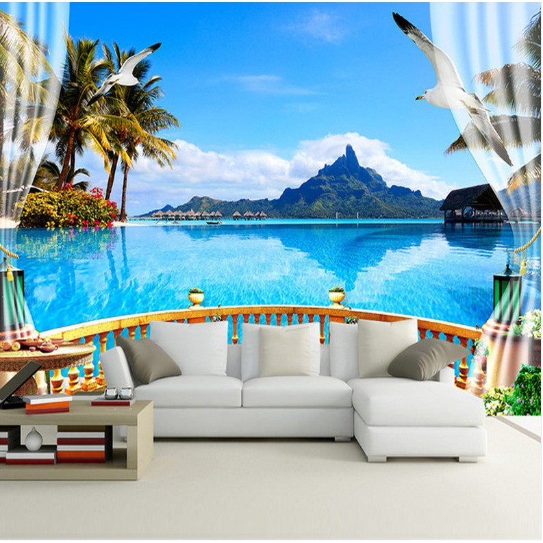 3d Living Room Bedroom Natural Balcony Sea View Mural Wallpaper