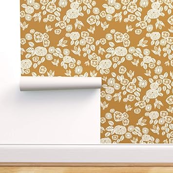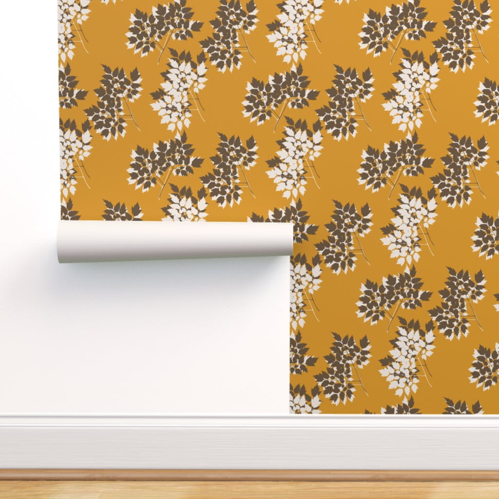 Peel And Stick Removable Wallpaper Amber Mustard Botanical Autumn