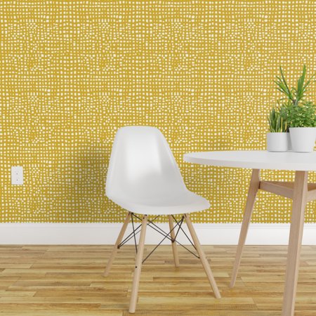 Peel And Stick Removable Wallpaper Strokes Stripes Mustard Dots