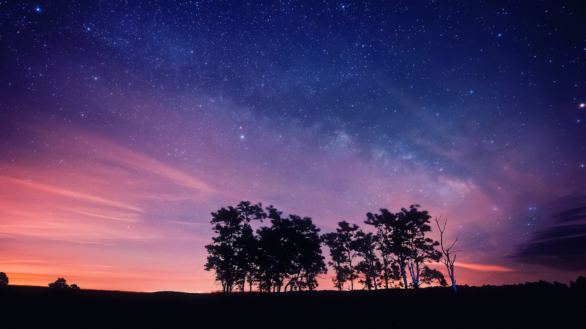 Night Sky Nebula Stars Horizon Silhouette Wallpapers Hd
