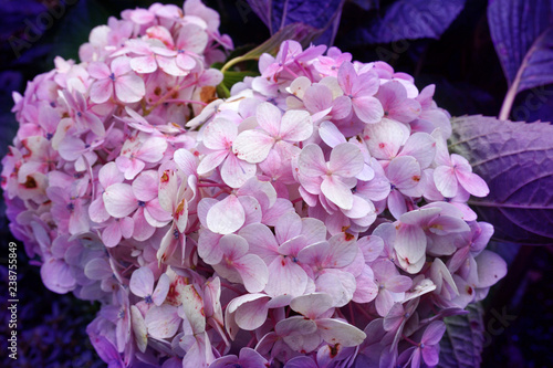 Hydrangea Macrophylla Bright Lilac Violet Purple Flowers Close Up
