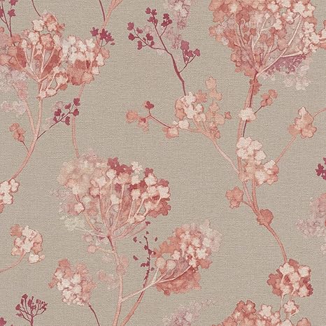 Rasch Florentine Chic Floral Wallpaper Grey Pink Natural Coral