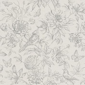 Wallpaper Floral Bird Grey Rasch Florentine 449440