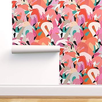 Spoonflower Peel And Stick Removable Wallpaper Flamingo Pink