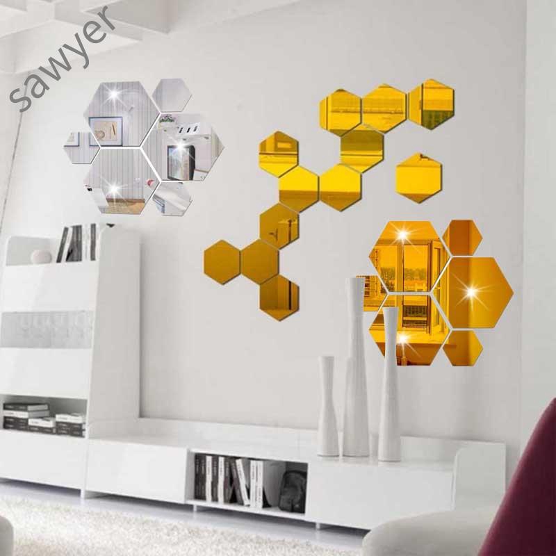12pcs Hexagon Removable Wall Mirror Sticker Furniture Home Decor