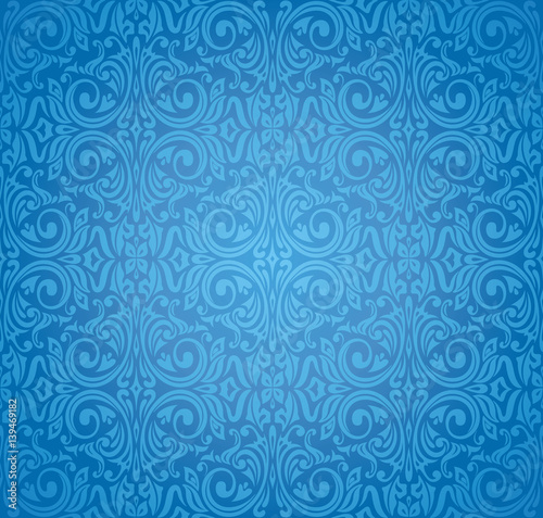 Turkish Blue Vector Pattern Wallpaper Design Background Stock