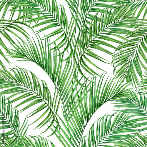 Watercolor Painting Coconut Palm Leaf Green Leave Seamless Pattern