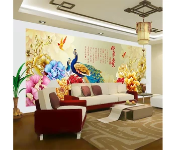 Digital Print Chinoiserie Peacock Wallpaper For Hall Decorating