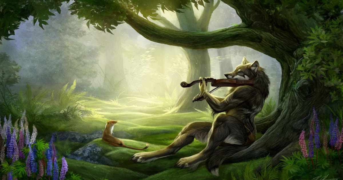 New Art Funny Wallpapers Jokes Fantasy Violin Playing Wolf