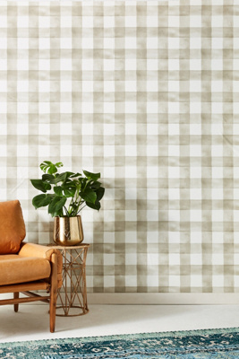 Watercolor Check Wallpaper In Soft Grey From The Magnolia Home