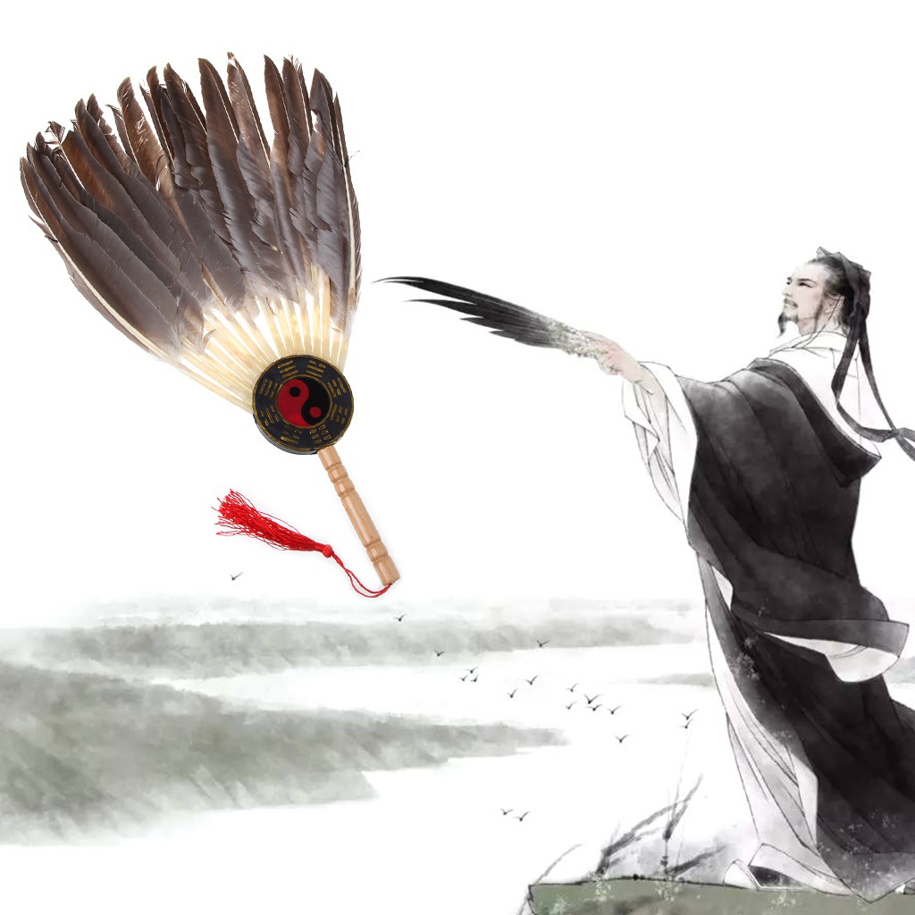Ancient Chinese Zhuge Liang Black Feather Hand Fan Shopee Singapore